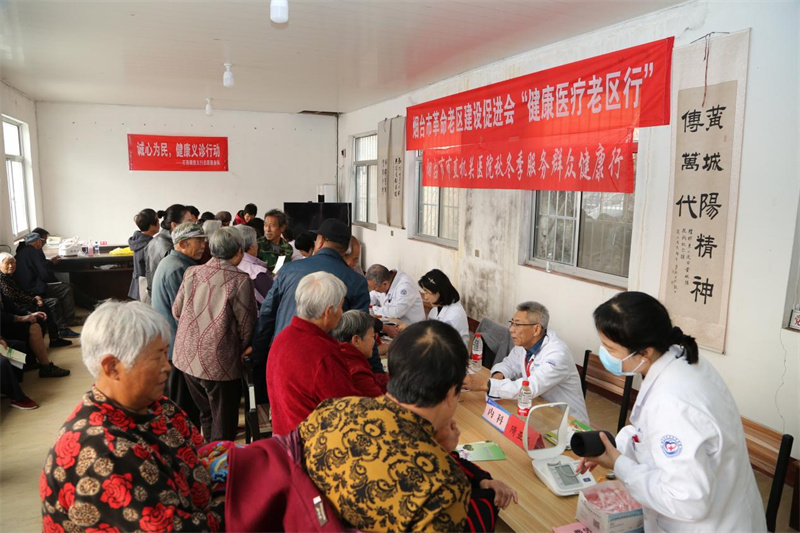11月16日上午,烟台市革命老区建设促进会联合烟台市直机关医院组织医疗专家团队,到龙口市石良镇黄城阳村开展“健康医疗老区行”义诊活动。烟台市老促会副会长张丛、烟台市直机关医院院长迟荣香、龙口市委副书记姜利春、龙口市老促会会长周学军等领导参加了活动。