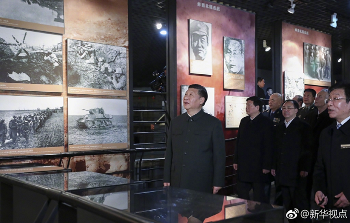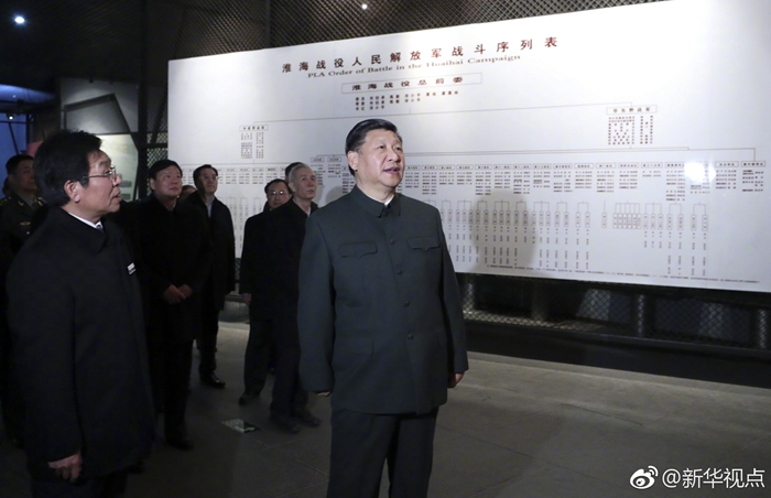 淮海战役纪念馆里,一件件实物、一张张图片、一个个场景,再现了那场会师淮海、决战中原的大战。习近平仔细观看,深有感触地说,革命胜利来之不易,靠有革命英雄主义精神的一大批将帅之才和战斗英雄,更靠人民的支持和奉献。淮海战役就是小推车推出来的胜利。我们要好好回报人民,让人民过上幸福美好的生活。(据新华社“新华视点”微博 文字:霍小光、张晓松)