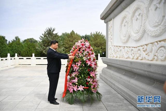 20日上午,习近平来到张掖市高台县,瞻仰中国工农红军西路军纪念碑和阵亡烈士公墓,参观中国工农红军西路军纪念馆,向革命先烈敬献花篮。