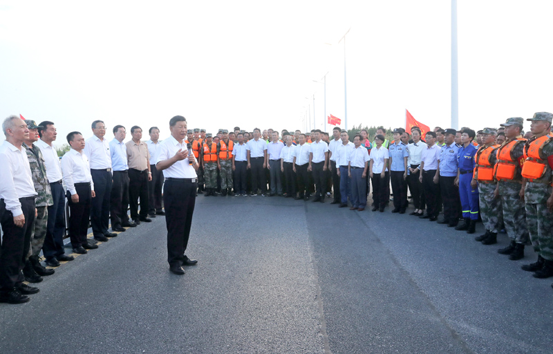 大堤上,习近平亲切看望慰问了在防汛抗洪救灾斗争中牺牲同志的家属、防汛抗洪一线人员、先进典型代表和参加抗洪抢险的部队官兵,并向全国奋战在防汛抗洪救灾一线的同志们表示诚挚的问候。他强调,今年入汛以来,南北方江河湖泊接连出现超警戒水位险情。广大干部群众和人民解放军、武警官兵坚决响应党和政府号召,发扬不怕累苦、不怕疲劳、不怕牺牲的精神斗志,坚守在防汛抗洪救灾第一线,涌现了许多先进典型和感人事迹,展现了中国人民众志成城、顽强拼搏、敢于胜利的英雄气概,书写了洪水无情人有情的人间大爱。党和人民感谢你们!