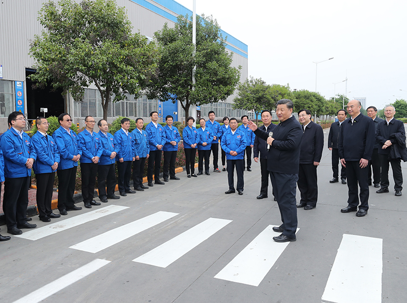 4月20日至23日,中共中央总书记、国家主席、中央军委主席习近平在陕西考察。这是4月22日,习近平在陕西汽车控股集团有限公司考察时,同企业职工亲切交流。新华社记者 鞠鹏 摄