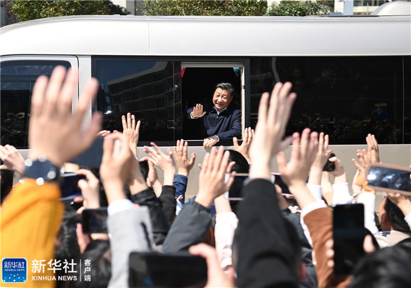 ↑3月22日至25日,中共中央总书记、国家主席、中央军委主席习近平在福建考察。这是25日上午,习近平在福州闽江学院考察时,向师生们挥手致意。新华社记者 燕雁 摄