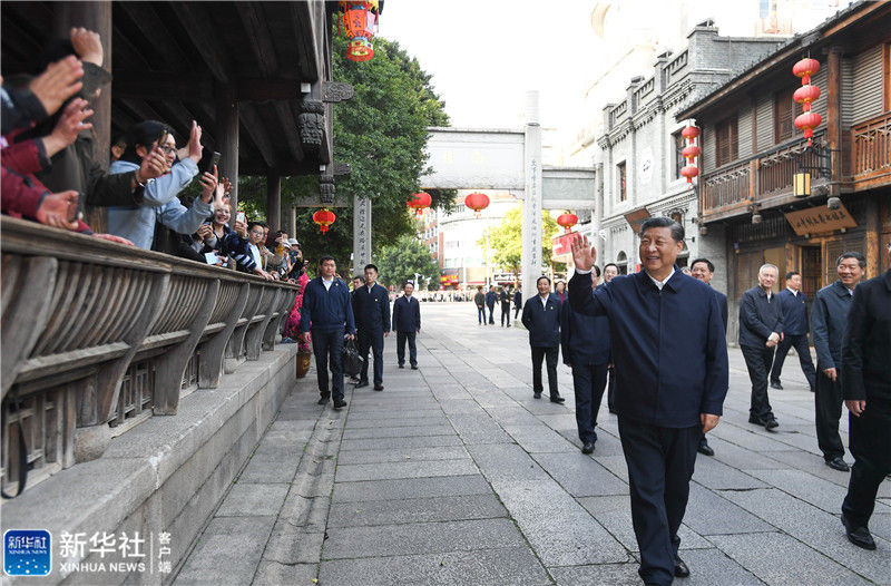 ↑3月22日至25日,中共中央总书记、国家主席、中央军委主席习近平在福建考察。这是24日下午,习近平在福州三坊七巷历史文化街区考察时,向游客和市民招手致意。新华社记者 鞠鹏 摄