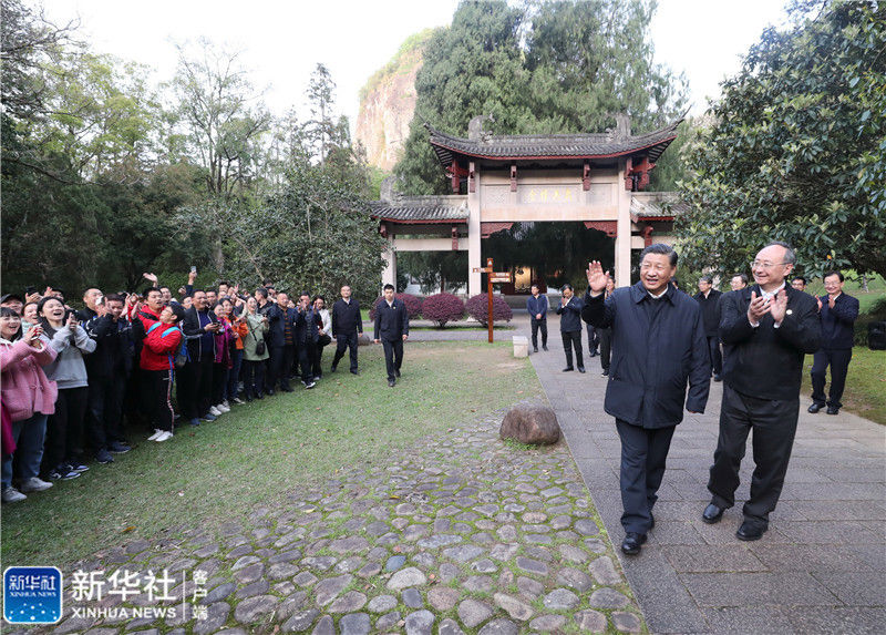 ↑3月22日至25日,中共中央总书记、国家主席、中央军委主席习近平在福建考察。这是22日下午,习近平在南平武夷山朱熹园考察时,向游客招手致意。新华社记者 王晔 摄